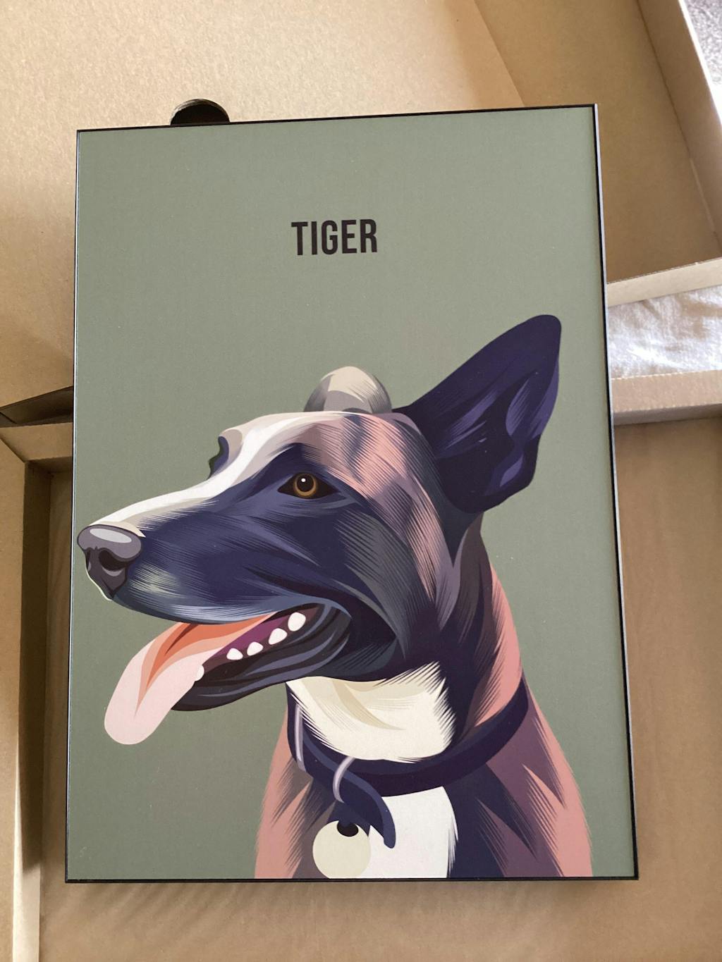 Our dog Tiger passed away a couple of weeks ago. I wanted to get his portrait to display and found Poster and Paw in an online search, I was impressed with the speedy communication, ease or placing the order and the proofing process, and quick delivery to WA. It looks amazing! Exactly like the photo provided. I wouldn’t change a thing about the experience or the portrait.