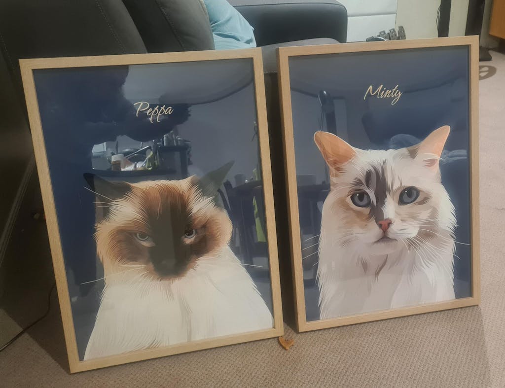 Thank you so much, Candice for sharing this with us. The team is delighted to know we were able to give you the portraits that you are happy to place inside your home and cherish alongside your dear mates Minty and Peppa <3