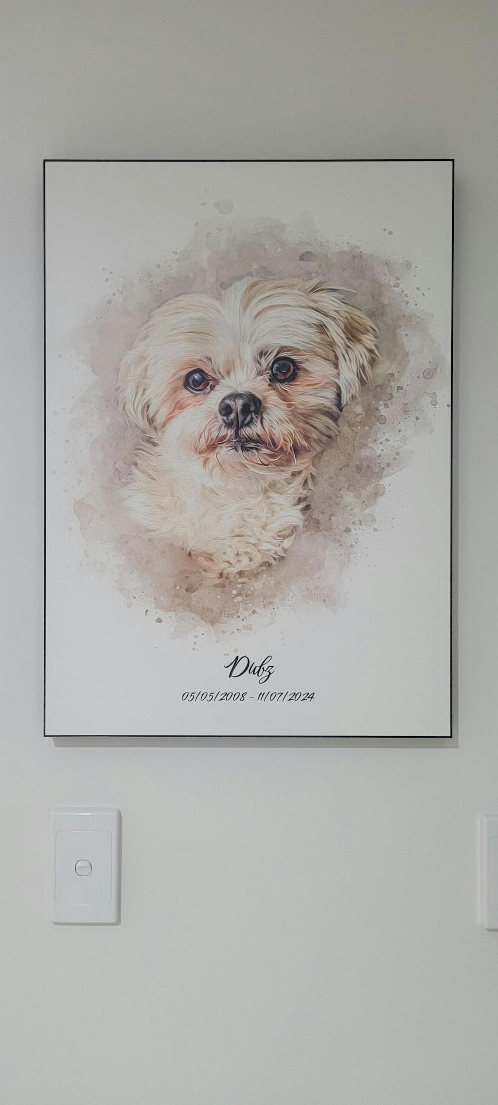 We lost our little Boy Dubz after 16 years and wanted to create a beautiful portrait for our family to still admire his beautiful little face everyday. We are extremely happy with our print. It captures Dubz perfectly. Thank you so much for a wonderful result and professional service.